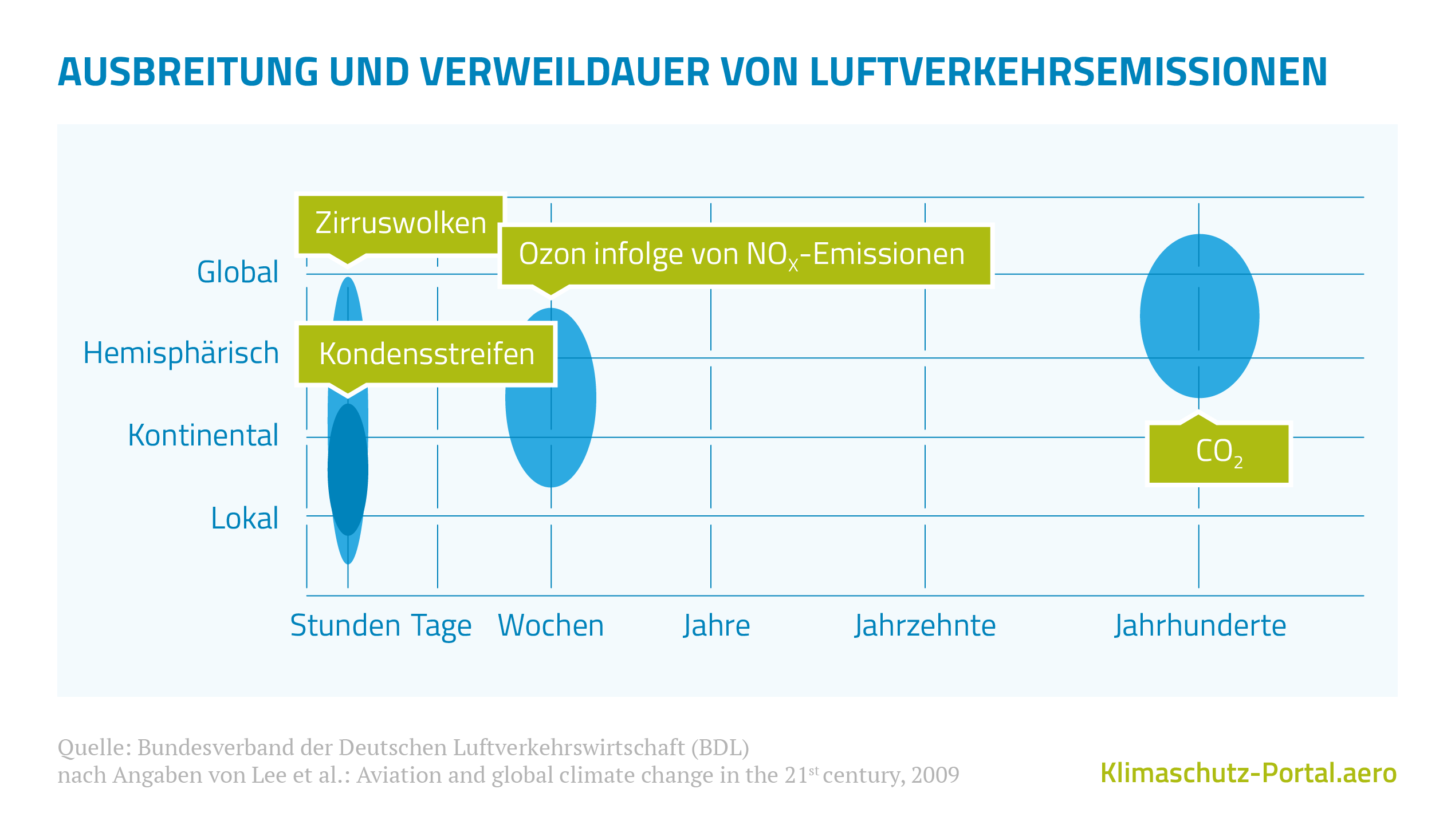 Quelle: Bundesverband der Deutschen Luftverkehrswirtschaft (BDL) nach Angaben von Lee et al.: Aviation and flobal climate change in the 21st century, 2009