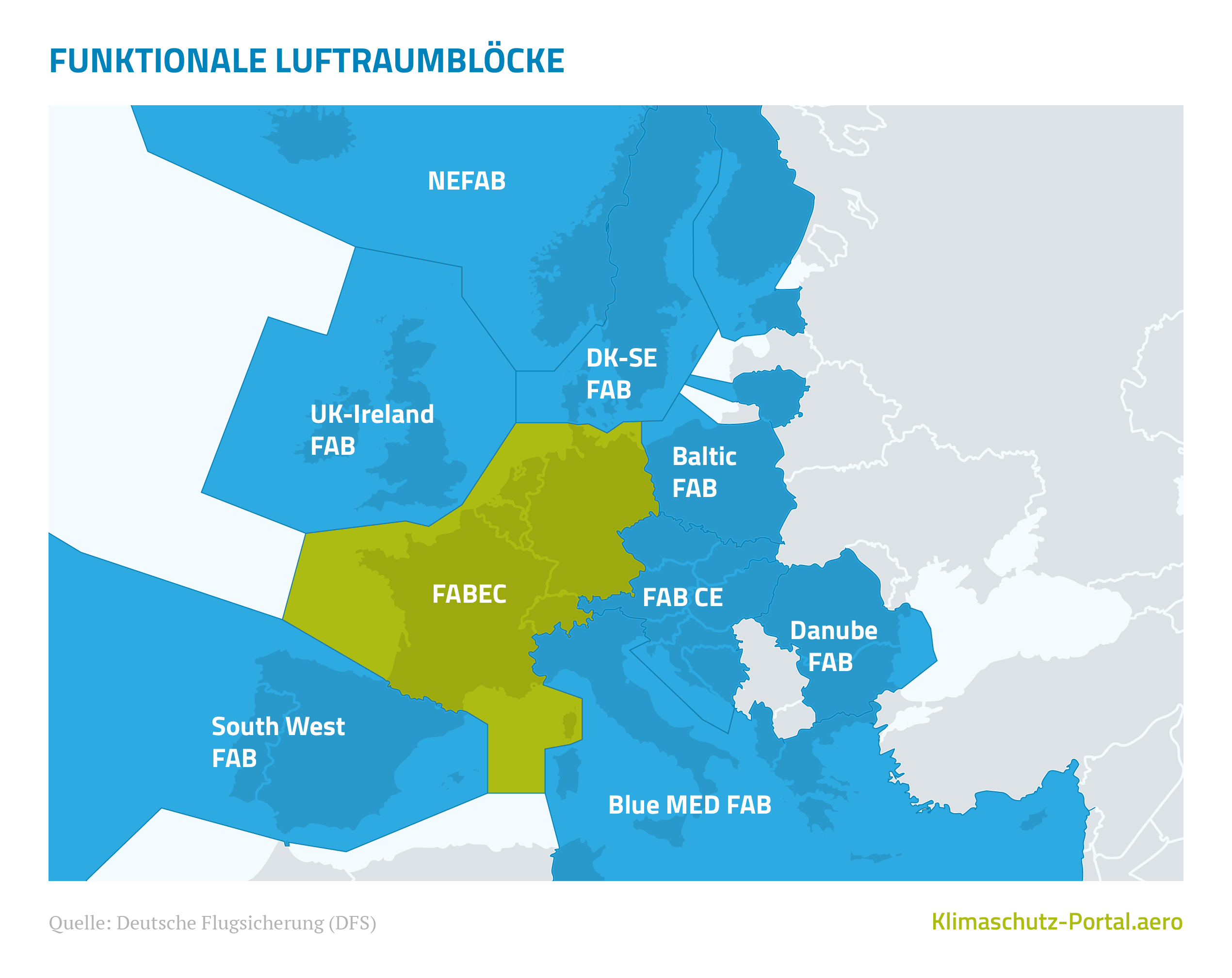 Um den Flugverkehr in Europa zu vereinheitlichen, wurde das Programm Single European Sky (SES) ins Leben gerufen. Dazu gehörte auch die Einteilung des Luftraums in Functional Airspace Blocks (FABs). Ein FAB ist ein definierter Luftraum, der sich über mehrere Länder zieht. Die Größe des einzelnen FAB richtet sich nicht nach den Landesgrenzen, sondern nach den Hauptverkehrsströmen. Der Luftraum über Belgien, Frankreich, Deutschland, Luxemburg, den Niederlanden und der Schweiz bildet den Functional Airspace Block Europe Central – kurz FABEC. In ihm sind zugleich die meisten der großen europäischen Flughäfen und Hubs angesiedelt.